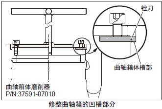 (1) 檢查曲軸箱的凹槽部分,確認角部無(wú)裂損,與缸套凸肩下面接觸部分無(wú)單側接觸。有異常時(shí),修整曲軸箱的凹槽部分。