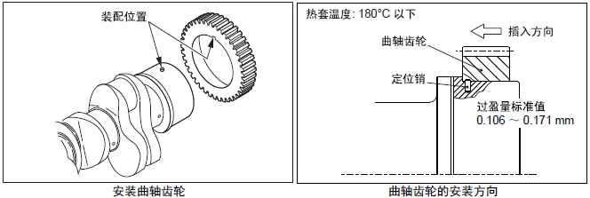 (2) 將曲軸齒輪在規定溫度以下進(jìn)行均勻預熱。確認曲軸齒輪的方向和位置后擊入。