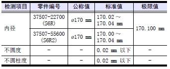(3) 測量值不在基準值范圍內,或凸緣部分有斷缺時(shí),更換新的缸套。