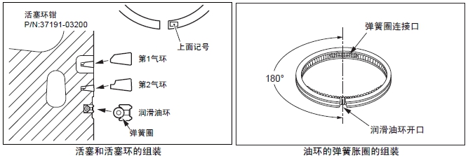 注意活塞環(huán)的不要上下反裝,反方向裝配時(shí),會(huì )引起發(fā)動(dòng)機燒損等故障。