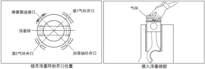 注: 參照上記(2) 項,錯開(kāi)活塞環(huán)的位置。