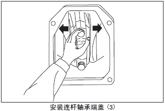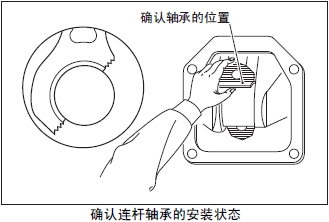 (6) 從曲軸箱體的側面檢測口檢查連桿的上軸瓦是否脫落。上軸瓦錯位時(shí),用手推壓上軸瓦進(jìn)行調整。