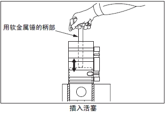 (5) 用軟錘打擊活塞頭部將活塞插入缸套。