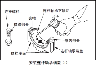 (c) 安裝連桿軸承端蓋時(shí),細齒形部分、螺栓座面或螺栓的螺紋部分不能有雜質(zhì)或金屬片夾入。