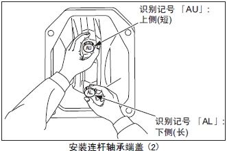 (3) 確認三菱發(fā)動(dòng)機連桿軸承端蓋和連桿的裝配編號位于同一側,并且裝配編號一致后,將連桿軸承端蓋安裝在連桿上。