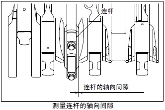 測量連桿的軸向間隙。超過(guò)極限值時(shí),更換故障原因的零部件。