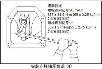 (7) 按照規定的扭矩緊固連桿螺栓。旋緊連桿螺栓時(shí),在按照規定扭矩緊固后,將螺栓完全旋松,再次按照規定的扭矩緊固。再次測量軸向間隙。