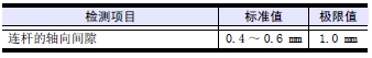 (6) 檢測三菱發(fā)動(dòng)機連桿的軸向間隙,調整至標準值范圍內。
