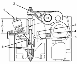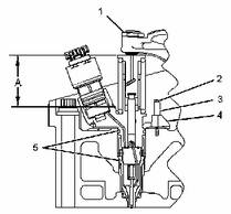 55±10N·m(41±7lbft)。A--單體噴油器的高度是從正時(shí)底座起進(jìn)行測量的。將單體噴油器的高度調整為