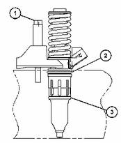 松開(kāi)鎖緊螺母(1)。 順時(shí)針旋轉調節螺釘。單體噴油器接合后停止旋轉調整螺釘。 順時(shí)針旋轉調節螺釘。旋轉...180度(1/2圈)