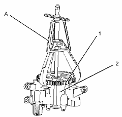 卸下將驅動(dòng)齒輪 (1) 固定在發(fā)動(dòng)機機油泵 (2) 泵軸上的螺栓。 使用工具 (A) ,從軸上卸下驅動(dòng)齒輪。 從軸上卸下鍵。