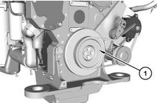 拆下其余的螺栓 (2) 。從曲軸上卸下減振器 (3) 和曲軸皮帶輪 (1) 。