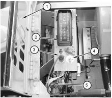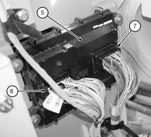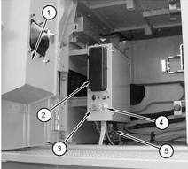 卡特彼勒365C和385C挖掘機機器 ECM (5) 位于駕駛室(前檢修門(mén)) (1) 后面的腔室內。