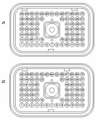 卡特彼勒365C和385C挖掘機與 ECM 配對的機器線(xiàn)束接頭 J1 and J2。