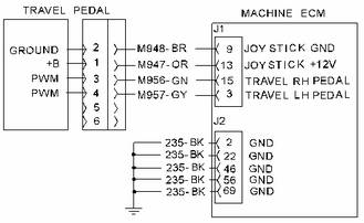 注: 左履帶行駛位置踏板傳感器為 PWM 傳感器。 如果傳感器電源出現故障,PWM 傳感器將設定 FMI 03 代碼。 檢查 CID 0467 FMI 03 是否隨 CID 0466 FMI 03 代碼一起存在。如果存在,則執行測試步驟 1。 如果不存在,則跳過(guò)測試步驟 1 而執行測試步驟 2。