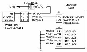 該診斷代碼與回轉泵壓力傳感器有關(guān)。 FMI 04 表示機器 ECM 已確定傳感器輸出信號電壓低于正常值。