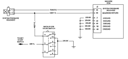 該診斷代碼與系統壓力電磁閥有關(guān)。 FMI 05 表示 ECM 已確定電路中存在開(kāi)路。