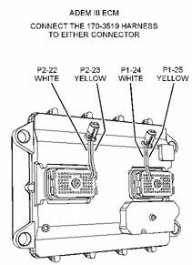 注: 請參閱圖 1 或圖 2。 170-3519 線(xiàn)束可以連接到 P1 接頭或 P2 接頭上。 選擇最容易靠近的接頭。