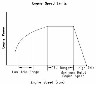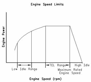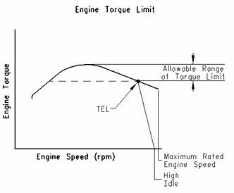 "TEL"是一個(gè)客戶(hù)可編程參數,用于定義最大功率下允許的最高發(fā)動(dòng)機轉速。最大可將"TEL"編程設定在最高發(fā)動(dòng)機額定轉速上。"TEL"通過(guò)發(fā)動(dòng)機過(guò)載運轉曲線(xiàn)定義。