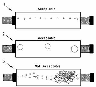 2P-8278管組件(目測表) (1)直徑大約為1.60mm(0.063in)的穩定小氣泡流動(dòng)是燃油中容許的空氣量。 (2)如果氣泡之間的間隔為2到3秒,則容許直徑約為6.35mm(0.250in)的氣泡。 (3)燃油中氣泡過(guò)多是不容許的。 |
