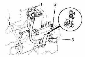 運行注油泵的同時(shí)打開(kāi)燃油濾清器上的螺塞(1)。