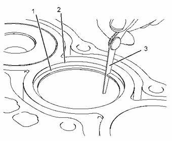 將卡特彼勒3064/6發(fā)動(dòng)機每個(gè)活塞環(huán)(1)放在氣缸環(huán)形臺階(2)正下方的氣缸孔內。
