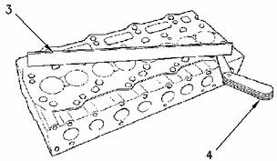 測量卡特彼勒3064/6發(fā)動(dòng)機缸蓋的平直度。利用直尺(3)和塞規(4)測量平直度。