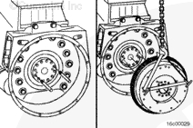 飛輪裝配螺釘應為至少帶滾壓螺紋的SAE 8級螺釘。使用同樣的更換零件,否則可能造成飛輪損壞,并導致人身傷害或財產(chǎn)損失。