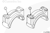 斷面分裂式連桿 (1) 可以在同一臺發(fā)動(dòng)機中與鋸切式連桿 (2) 混用。關(guān)鍵的問(wèn)題是了解正在維修的連桿是哪種型式,以進(jìn)行正確的軸承軸瓦選擇。