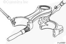 核實(shí)兩個(gè)連桿環(huán)形定位銷(xiāo)已分別安裝到連桿和連桿蓋上。