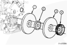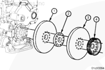 在導向雙頭螺柱上安裝減振器 (1)、裝配隔圈 (2)、第 2 個(gè)減振器 (3) 和皮帶輪 (4)。