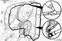 將前齒輪室蓋安裝在導向銷(xiāo)上。