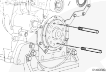按圖示在齒輪室蓋上安裝一個(gè)千分表,測量減振器的偏心度(不圓度)。