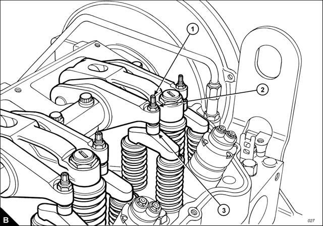7 Use a set of feeler gauges, inserted at the position shown (B3) between the valve bridge piece and the rocker