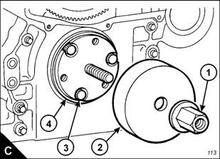 5 Apply clean engine oil to the face of the nut (C), GE5004, and to its contact area on the installer, GE5002.