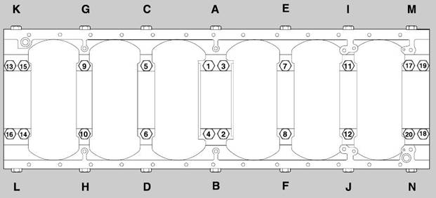 'V' blocks under nos. 1 and 7 main journals0,1000 mm