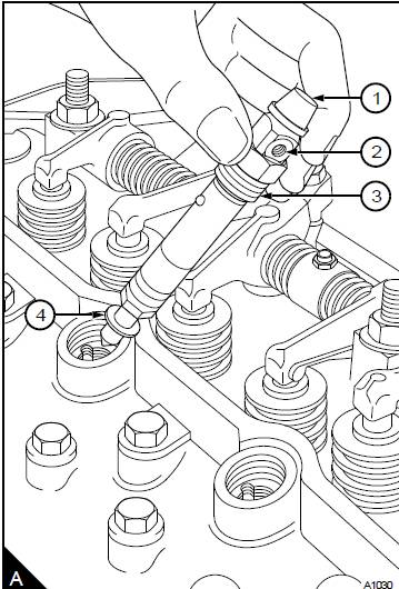3松開(kāi)卡箍螺母(A3)并從缸蓋凹處拆下噴油器及其座圈。