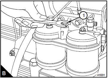 對于裝配獨立濾芯的濾清器:松開(kāi)濾清器座頂部的放氣旋塞(B1)或banjo螺栓。