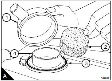 2在出口噴嘴和搖臂蓋之間使用合適的桿以便從呼吸器(A4)的主體上拆下呼吸器蓋。確保呼吸器蓋和搖臂蓋