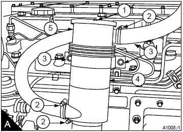 1松開(kāi)Perkins1000/4/6缸呼吸器蓋(A1)的軟管卡子