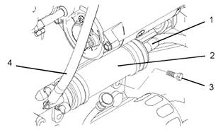 2.從注油泵上拆下防塵蓋。從燃油軟管組件上取下塞子。連接燃油軟管組件(1)。連接燃油軟管組件(4)。