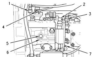 注:為了便于安裝,請在所有軟管組件和管組件上作識別標記。斷開(kāi)后,用合適的塑料塞堵住所有燃油軟管組件和所有管組件。還要在噴油泵的所有接頭上安裝防塵蓋。這將有助于防止液體泄漏和有助于防止污染物進(jìn)入系統。