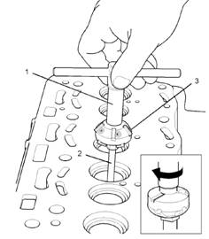 8.拆下工具(1)。清除氣門(mén)導管和氣門(mén)座的碎屑。