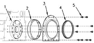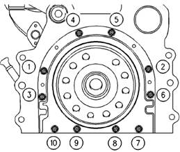 注:曲軸后部密封件和曲軸后部密封件的殼體是作為一個(gè)整體組件制造的。使用十個(gè)調整螺釘,以便將曲軸后部密封件組件固定到缸體上。