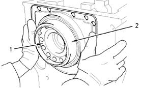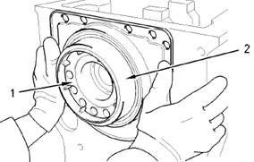 1.確保曲軸法蘭(1)保持清潔、干燥,并遠離粗糙金屬邊緣。確保缸體表面和曲軸箱橋接件清潔、干燥。