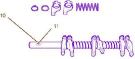 注:搖臂軸組件(1)的搖臂軸不對稱(chēng)。搖臂軸的前端有一個(gè)加工平面(10)。確保加工平面(10)朝上并朝向發(fā)動(dòng)機前端。