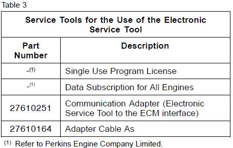 表3列出了所需的Perkins1204e-e44tta和1206e-e66ta柴油發(fā)動(dòng)機服務(wù)工具使用電子服務(wù)工具。