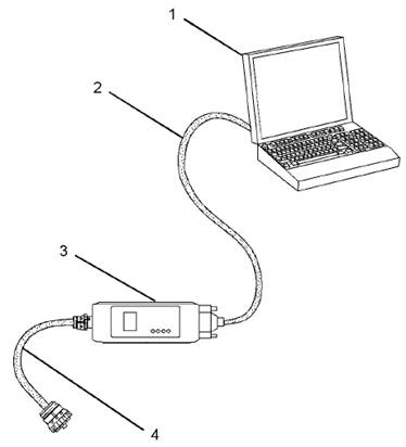 3。連接電纜(4)之間的“數據連接”結束通信適配器(3)和服務(wù)工具連接器。