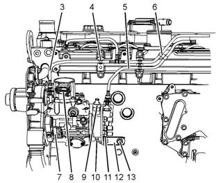 11.將塑料管組件(3)和塑料管組件(5)從夾子(4)和夾子(6)上拆下。將塑料管組件放置在遠離噴油泵的地方。