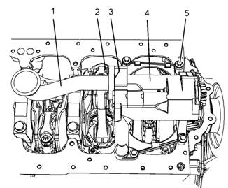 3卸下 螺栓 (5)。 將發(fā) 動(dòng)機 機油泵 組件 (4) 從 缸體上卸 下。